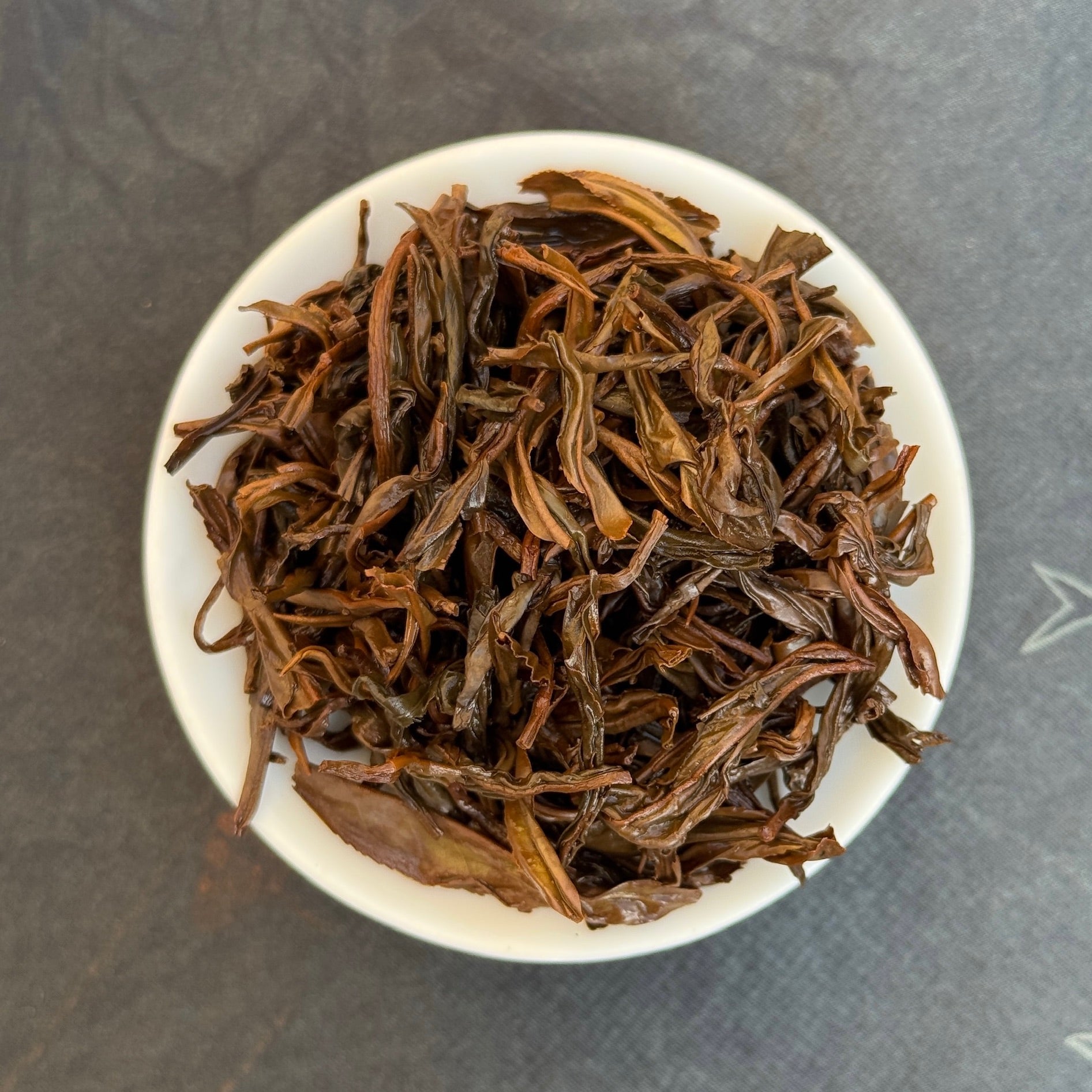The dry tea is dark and tightly formed. The liquor is clear amber-red. Aromas blend pine smoke with longan-like sweetness. After over three years of aging, the smoke has softened and integrated, resulting in a smooth, full-bodied cup where smoky and sweet notes unfold in layers. The finish is warm, balanced, and persistent, expressing the classic character of traditional Zhengshan Xiaozhong.