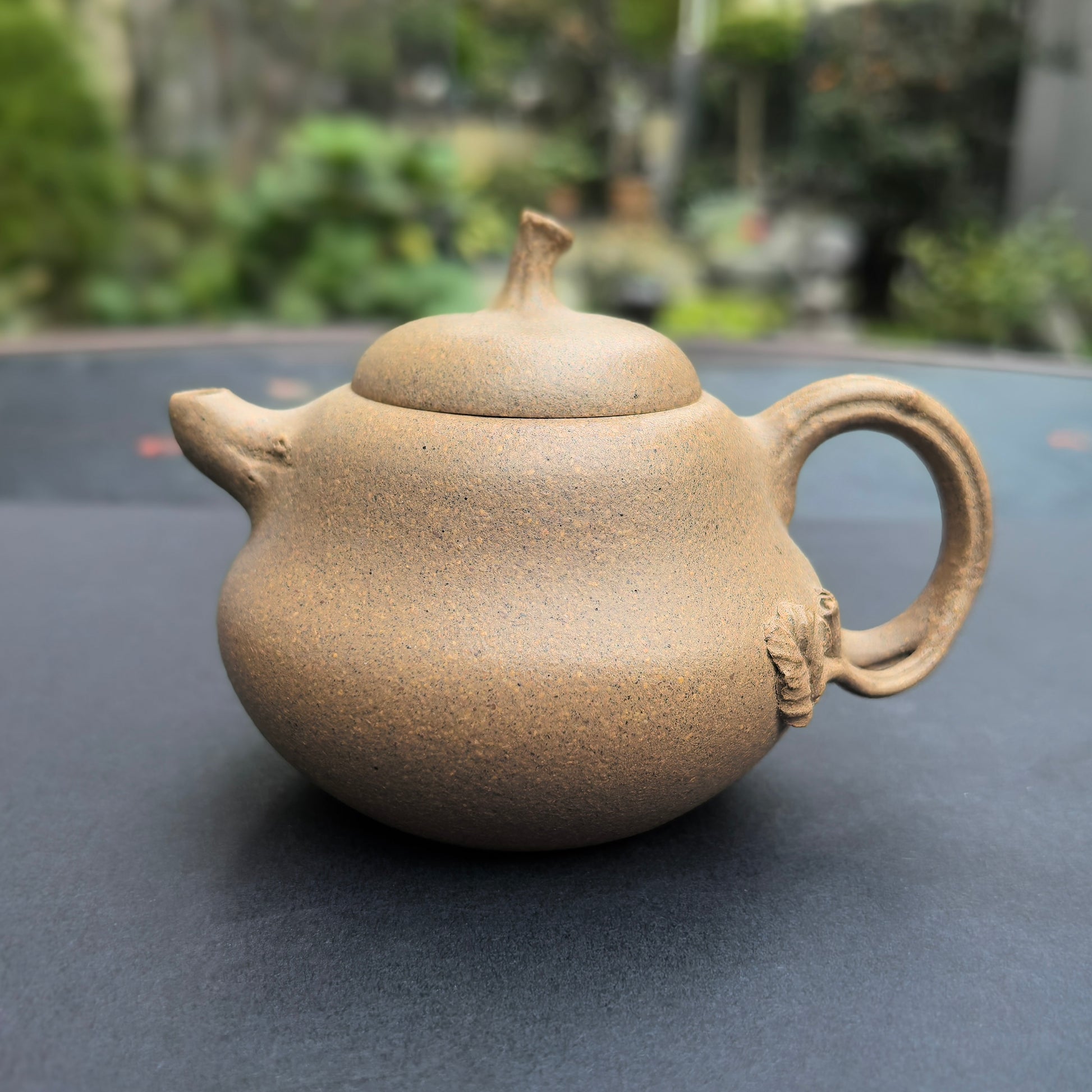 This 110 ml Yixing teapot is a beautifully executed example of the biomimetic (仿生) tradition—Yixing’s long-standing style of teapots inspired by natural forms. Crafted from genuine Duan Ni (段泥) by 杨文玉 (Yang Wen Yu), it captures the organic elegance of a ripe gourd, transforming a familiar natural shape into a refined brewing vessel.