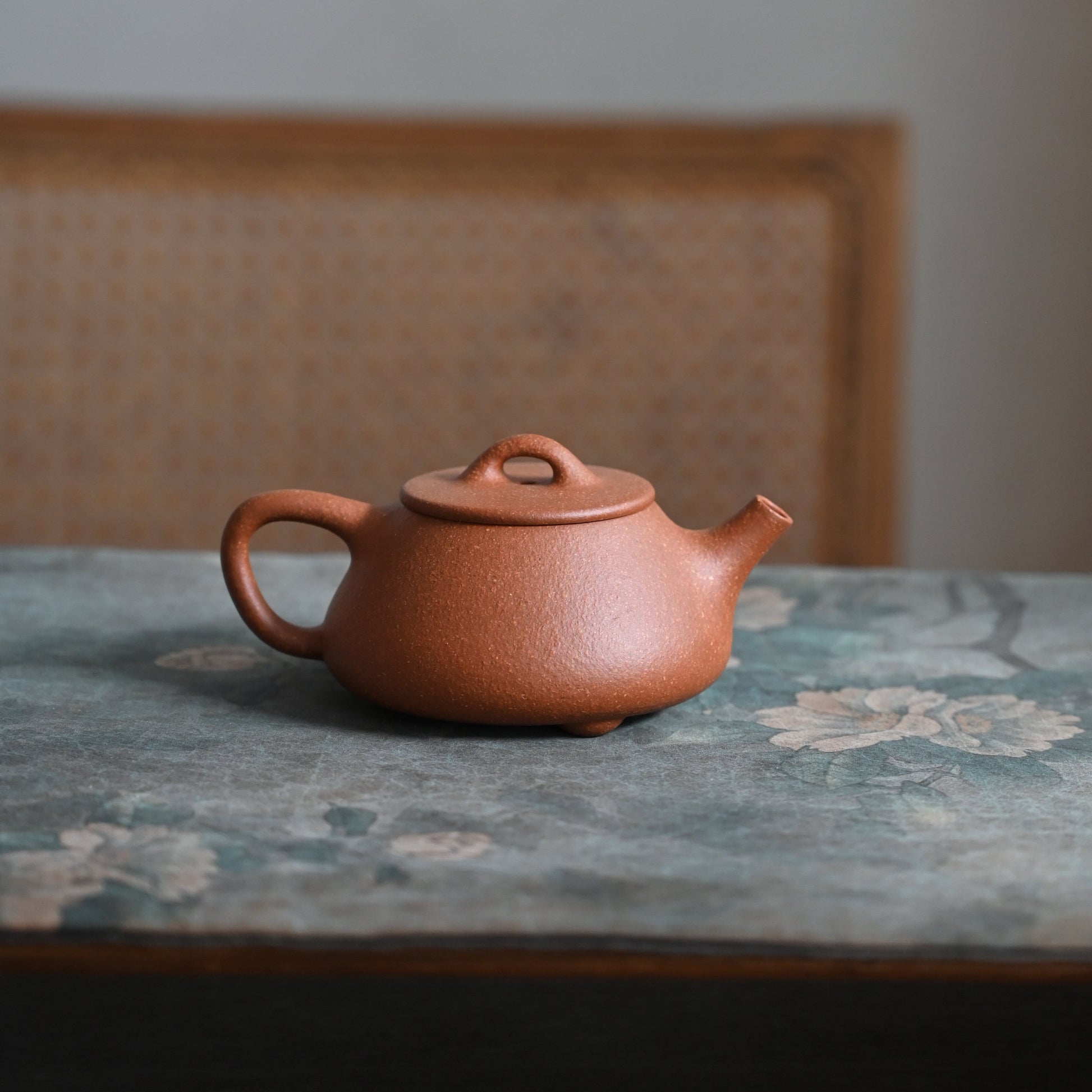 Half-handmade from Red Jiang Po Ni (红降坡泥), a variant of Duan Ni clay accidentally discovered in the early 1990s during road construction on the slope between Huanglong and Qinglong mountains (“downhill mud”). This iron-rich blend of purple, red and Duan Ni clays fires to a deep warm red-brown with striking colorful star flecks, evoking a starry sky or textured pear skin in a warm glow. High porosity seasons the pot fast, softens harshness, and enhances sweetness, aroma, and body. Best for oolong, black tea and shou pu-erh.