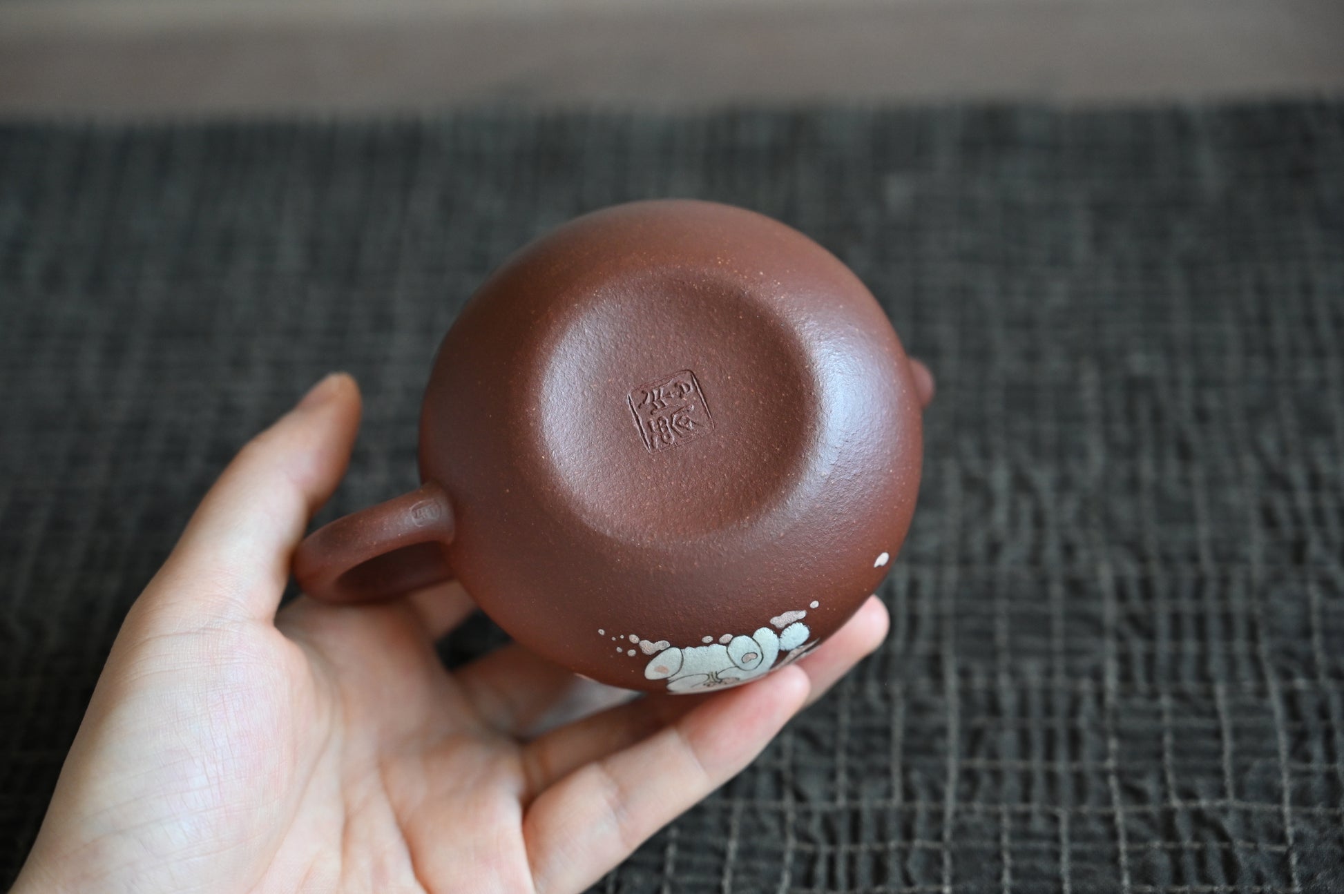 The teapot features traditional mud painting (泥绘), a distinctive Yixing Teapot decoration technique in which colored Zisha clay slips are carefully brushed onto the unfired body and fuse permanently during firing, creating natural clay art that develops the same nourishing patina as the teapot itself over time.